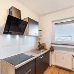 Eine komplette Küche ist zudem mit einer Mikrowelle, einem Wasserkocher und einem Kühlschrank ausgestattet. Die Bushaltestelle Kirleweg befindet sich auch in der Nähe, circa 5 Autominuten von der Ferienwohnung Bruchköbel 5 auch für Monteure entfernt.
